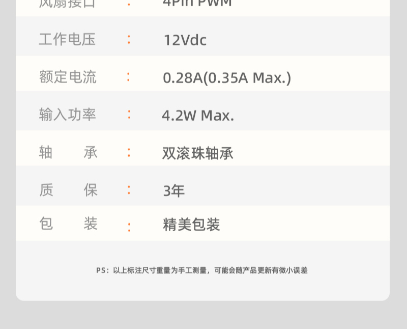 风扇尺寸: 120×120×25mm